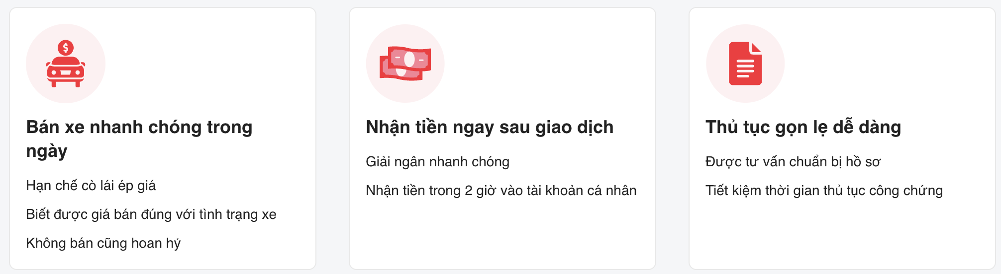Chúng tôi KHÔNG thu của bạn bất cứ chi phí giao dịch nào. Quá trình kiểm tra xe, tư vấn giá, tìm người mua là hoàn toàn MIỄN PHÍ.